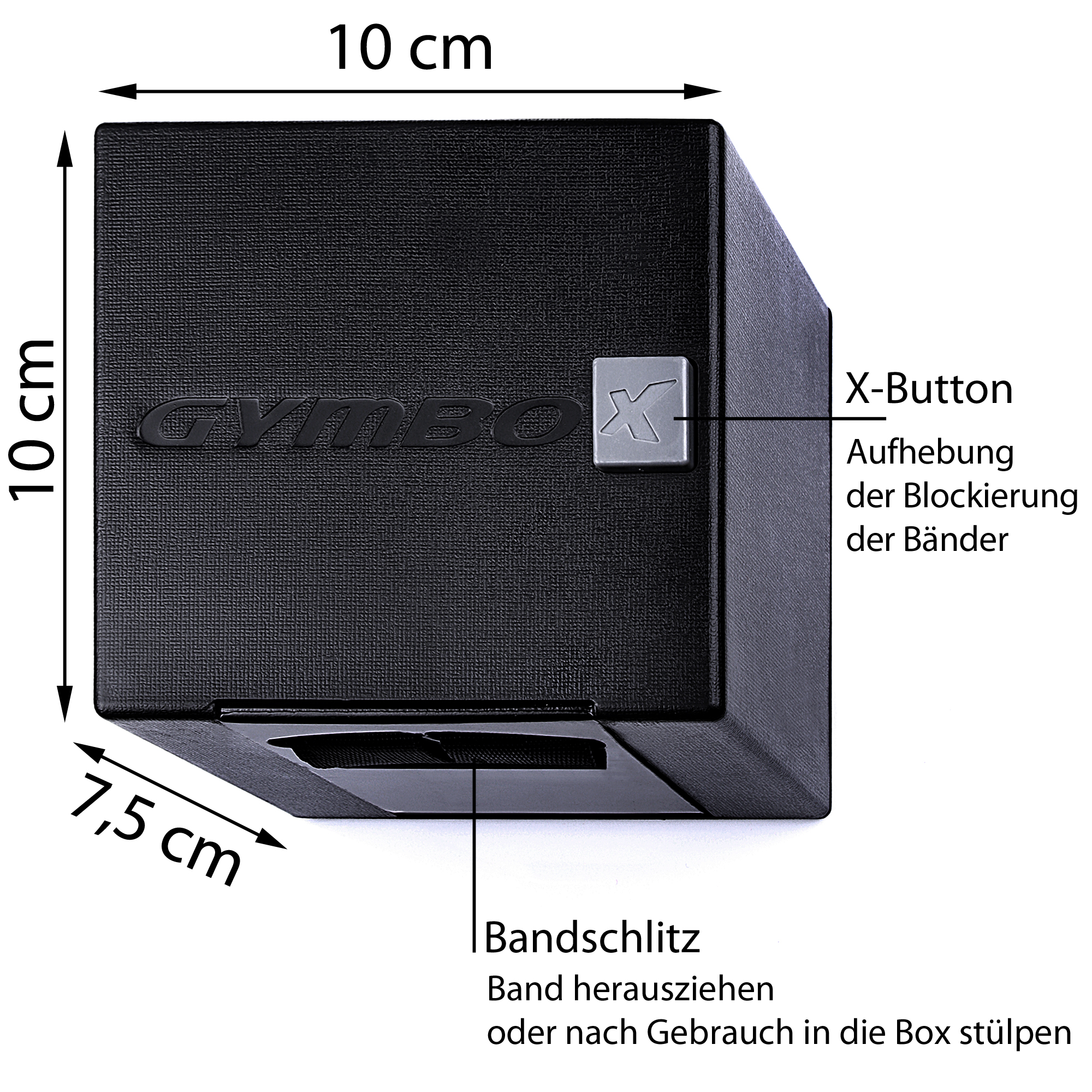 - verschwinden die Bänder komplett im Gehäuse der Gymbox, wenn nicht benötigt